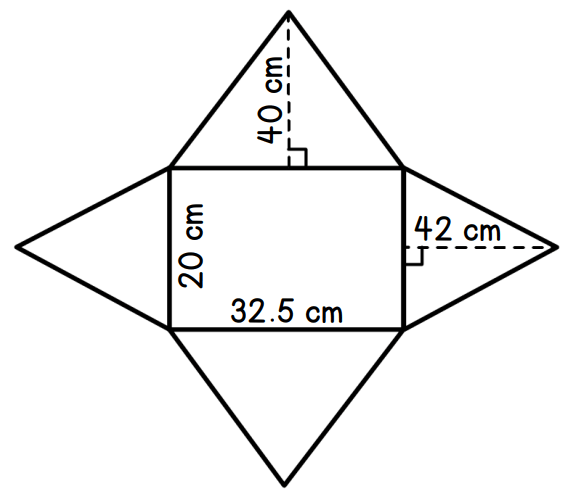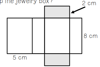 A jewelry box has the dimensions of the net shown below.  How much wrapping paper is needed to wrap the entire jewelry box?
