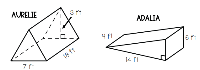 Which student correctly made a triangular prism with a volume of 378 cubic feet?