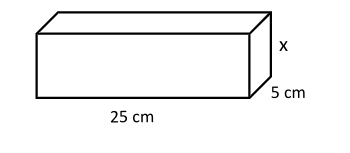 What is the height, x, of the rectangular prism if the volume is 750 cm3?