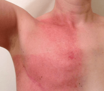 This painful “sun burn” like skin reaction can occur after external bean radiation