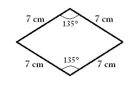 A rhombus is a parallelogram with 4 equal side lengths, with opposite pairs of congruent obtuse and acute angles. Since this parallelogram has an opposite pair of congruent obtuse angles, you know it is a rhombus. A square also has 4 equal side lengths, but its 4 angles are each 90°. Rectangles also have four 90° angles and two pairs of opposite congruent sides. Trapezoids do not have four equal side lengths.