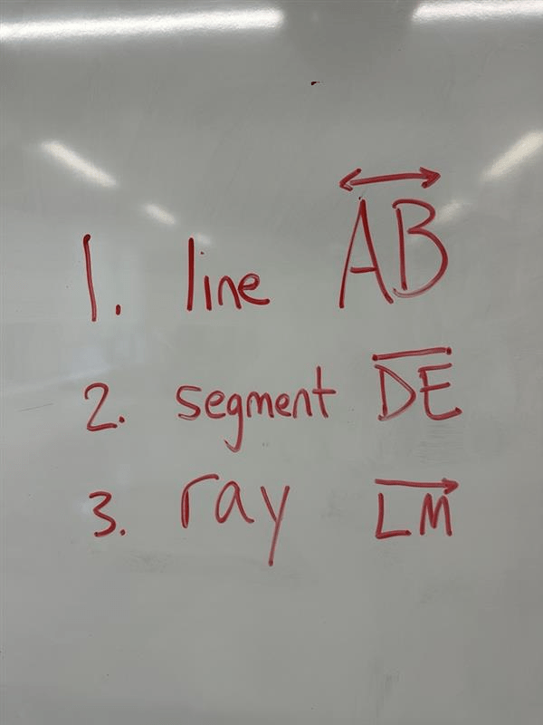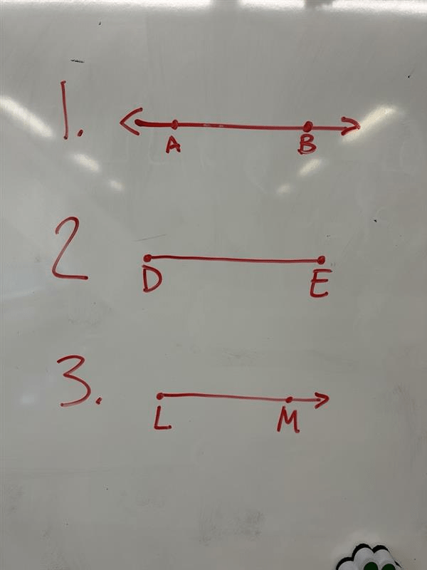 Describe each figure as a ray, line, or segment, Then use a symbol and letters to name each figure.