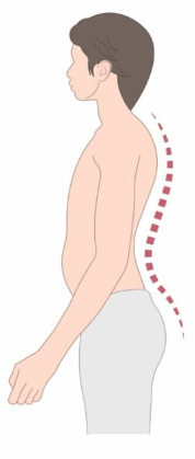 Lordosis. Can result from osteoporosis, poor posture, and abdominal weight gain.