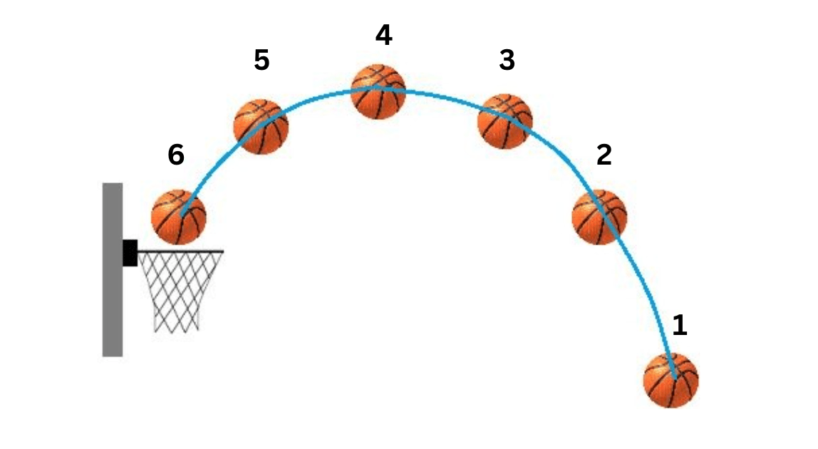 Where is the vertical velocity of this basketball = 0?