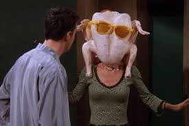 Which sitcom features the joke “The One with the Thanksgiving Turkey on the Head”?