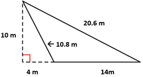 We are looking at 10m, 4m, and 14m. These are the measurements that correlate with the perpendicular lines.