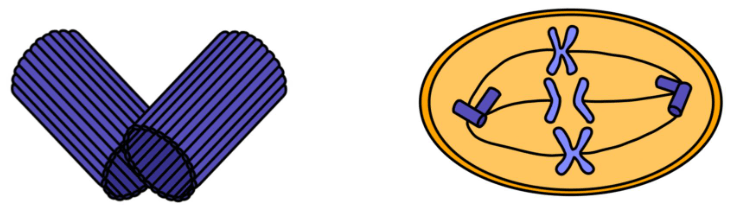The organelles that create spindle fibers and use them to move and separate chromosomes.