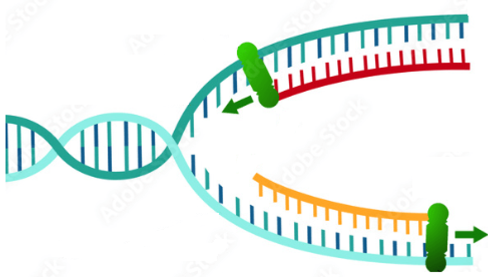 When DNA is unzipped by the Helicase enzyme, two strands are formed, called theses.