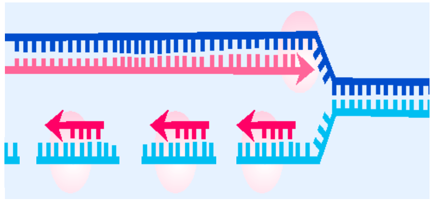 Small segments of replicated DNA on the lagging strand that need to be "glued" together.