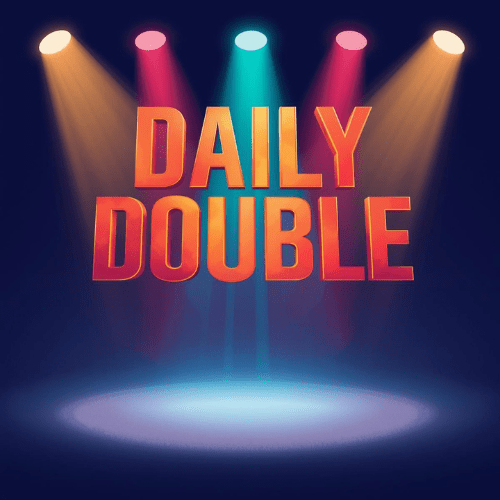 (1)a red box with (2) a green bow (3) by the rocking chair