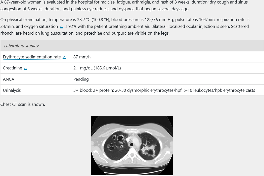 Kidney biopsy. Most likely patient has GPA, need a tissue biopsy to confirm prior to starting treatment given the risks of tx (unless dx is clear and there is urgent need for tx). GPA with kidney involvement is expected to have pathognomonic findings
