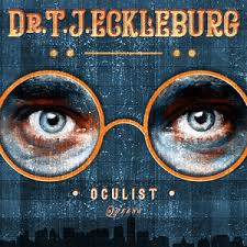 A pair of giant blue eyes with yellow glasses on a billboard; some say the eyes represent a failed God and that is pretty deep.