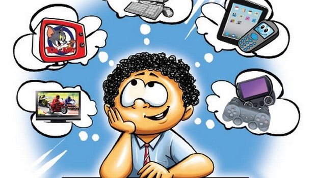 This poor boy is addicted to technology. He is in front of a _______ for 12 hours every day!