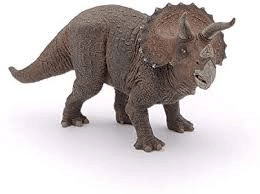 This dinosaur has horns like a rhino but two instead of one. It also has a cone that looks like a lion mane.