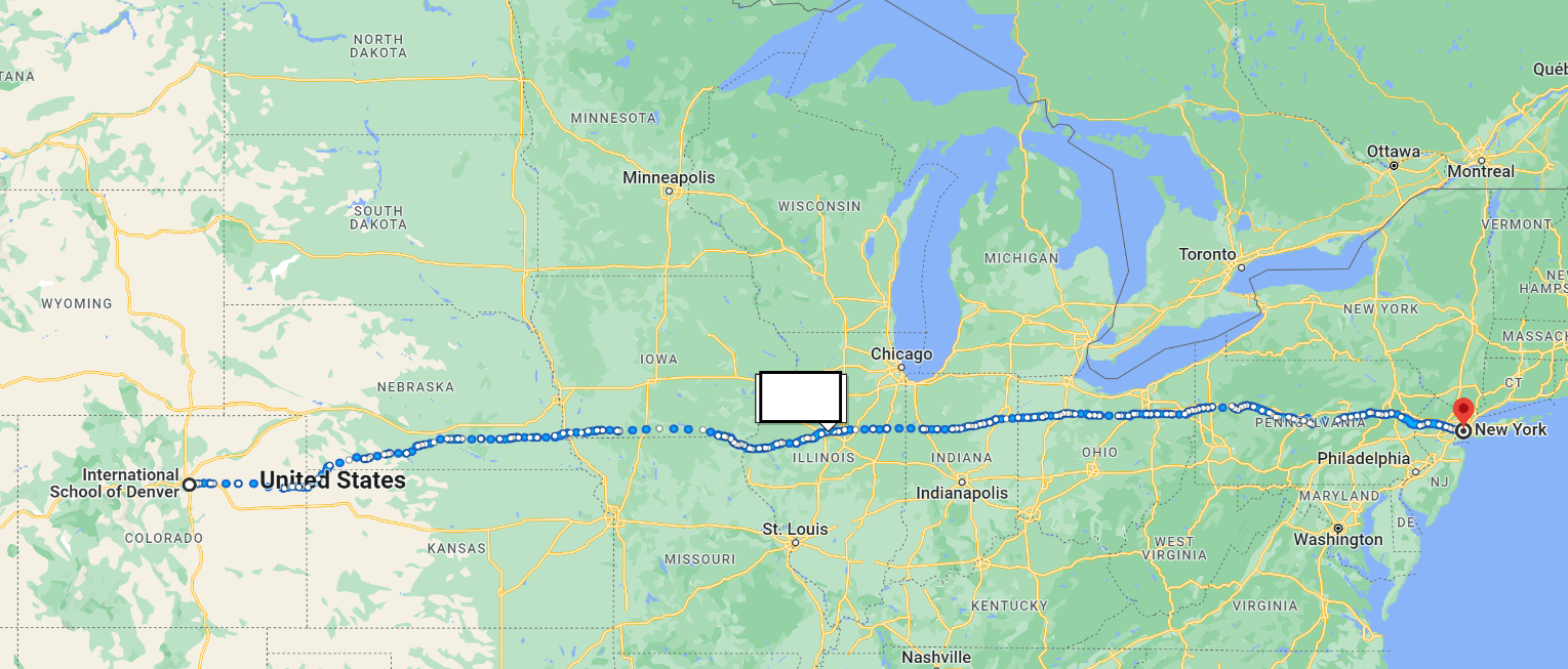 According to Google Maps, how many hours would it take to walk from ISDenver to New York City?