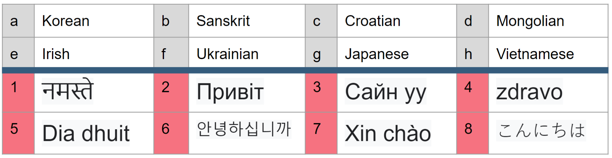 Match the hello to the language: