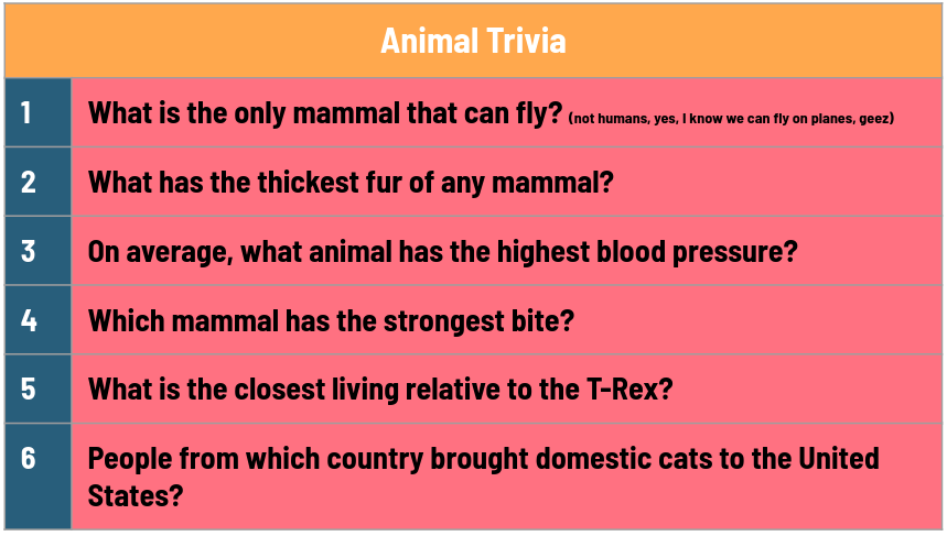 Test your animal trivia skills - get as many right as you can: