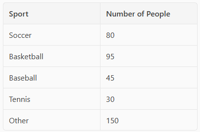 What is the experimental probability that a randomly selected person chose basketball as their favorite sport? Write your answer as a percent rounded to the nearest whole number.