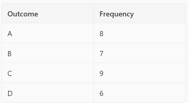 The spinner was spun 30 times, and the results are recorded in the table below: