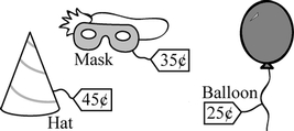 Carlos had 50¢. After he bought one of the items from the party store, he had 15¢ left. Which item did he buy?
