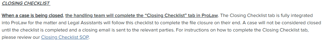 What is the "Closing Checklist" Tab in Prolaw?
