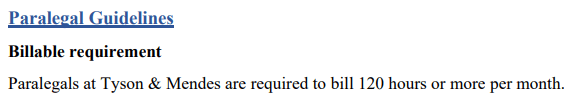 This minimum amount of hours must be billed by a Paralegal every month.