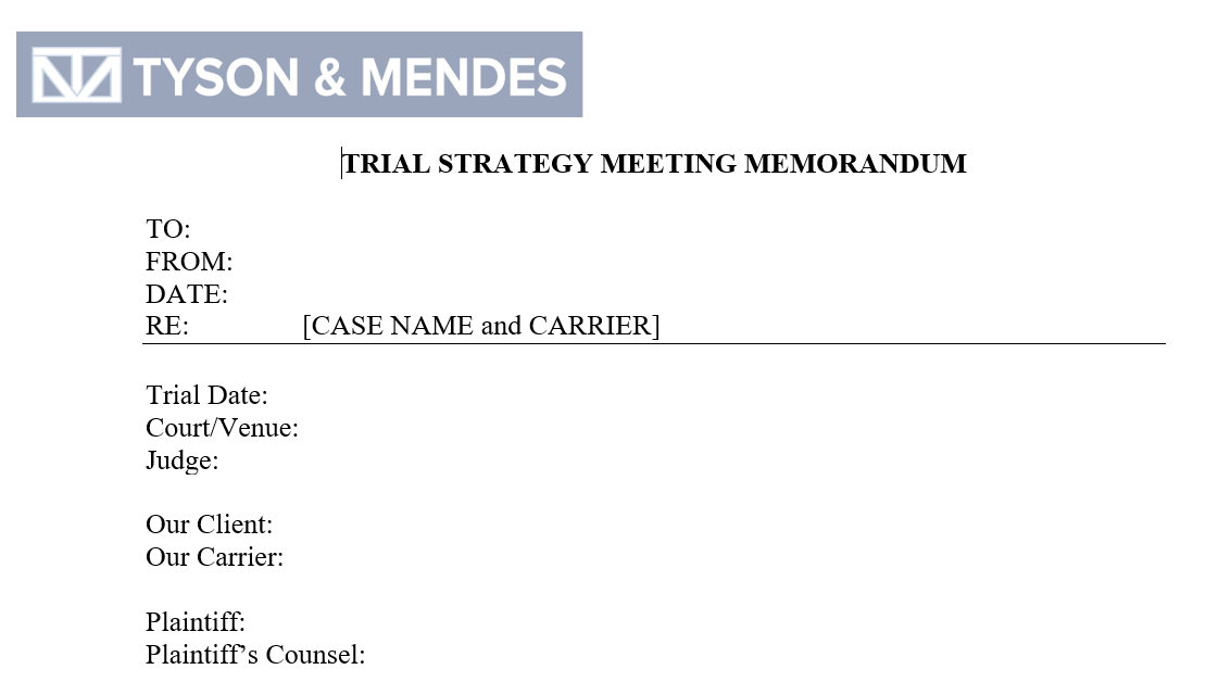 This mandatory meeting is required, as a firm policy, for all matters going to trial and is scheduled at least 90 days prior to trial.