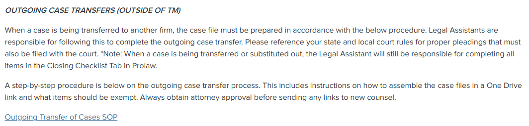 What is the "Outgoing Case Transfer SOP"?