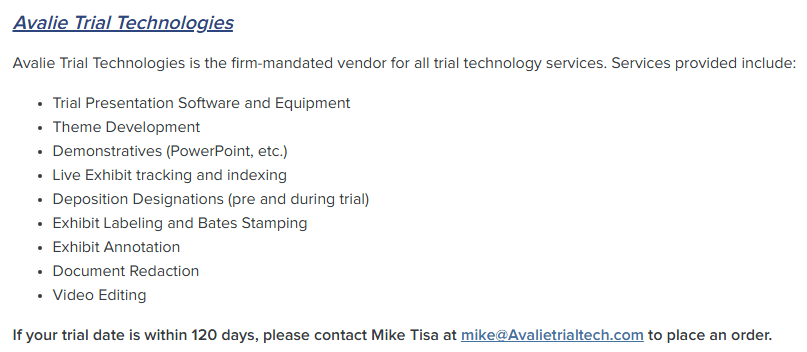 When a team has secured a trial victory, the handling team will notify this TM department to share the good news with the rest of the firm.