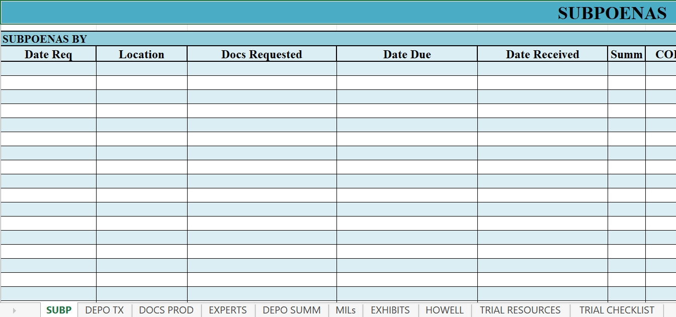 This firm resource assists paralegals with the tracking of subpoenas.