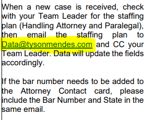 This department handles the updating of contact information and any other locked fields in Prolaw.