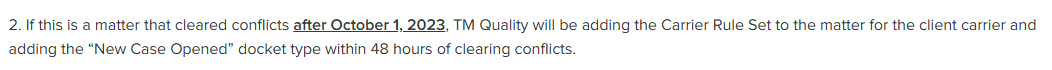 When a new matter is opened, TMQ will automatically add the _______ in Prolaw.
