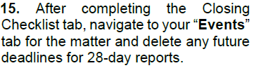 When an attorney says a matter is ready to close, the Legal Assistant has 7 days to complete this.