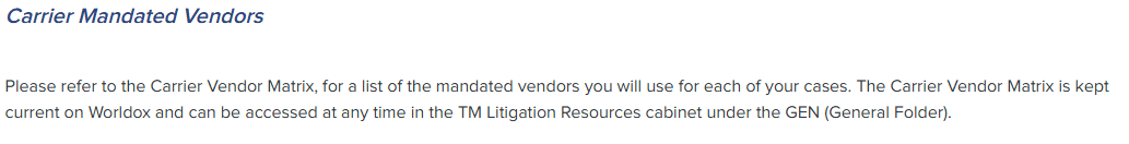 When a Carrier Mandated Vendor is not specified, we will request permission from the adjuster to retain a vendor from this list.