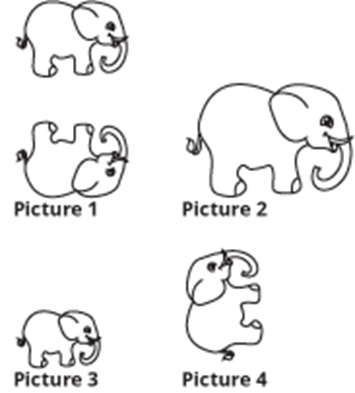 Pictures 2 and 3 are not congruent because they are not the same size as the original image.