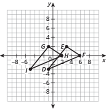 Use the coordinates to determine the transformation or sequence of transformations used to map the first triangle onto the second. Triangle EFG with coordinates E(-4,2), F(-2,1), G (-1,-3) maps onto triangle XYZ with coordinates X(4,4), Y (2,3), and Z (1,-1).