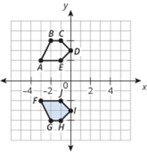 Figure ABCDE reflects across the x-axis.