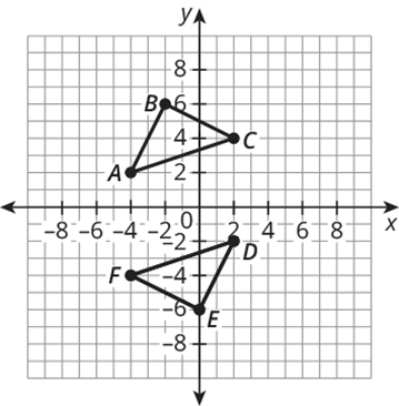 Use the coordinates to determine the transformation or sequence of transformations used to map the first triangle onto the second triangle.