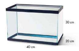 One cubic centimeter will hold 1 mL of water.  How many mL will the aquarium hold?  How many L will it hold?