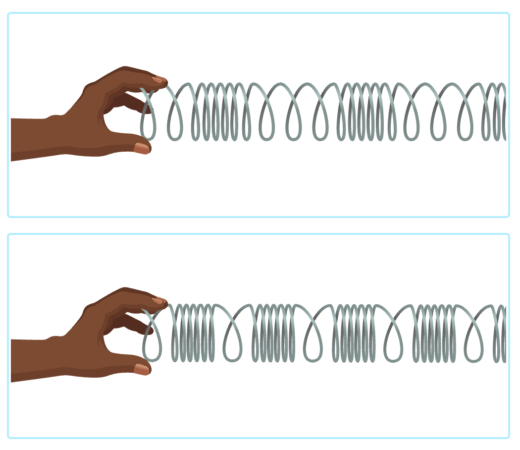 Which wave in the spring toy has a greater amplitude? Hint: Greater amplitude = Greater energy