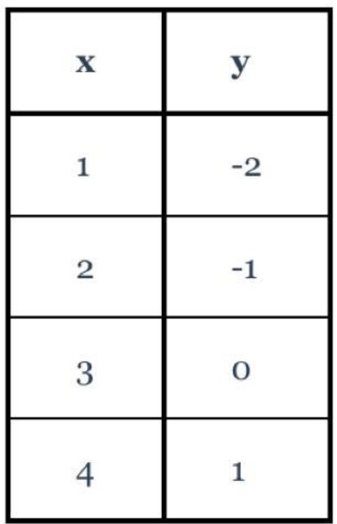 What equation represents the function table below?