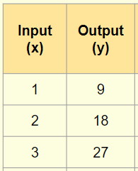 If a function rule is 9 – 2x, what is the output for the input 3?