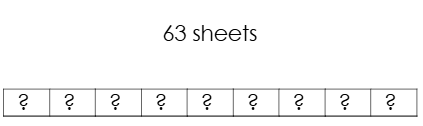 14. Kira has 63 sheets of recycled paper. She gives the same number of sheets to each of 9 friends. How many sheets does Kira give to each friend? Use the tape diagram to help.