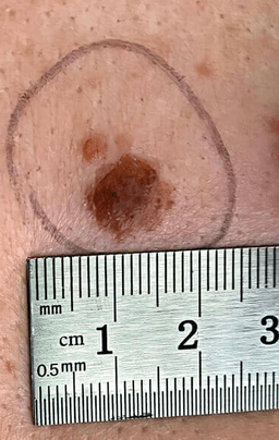 65M fisher from FL with 1.8mm thick lesion. Name the surgical margin and staging procedure.