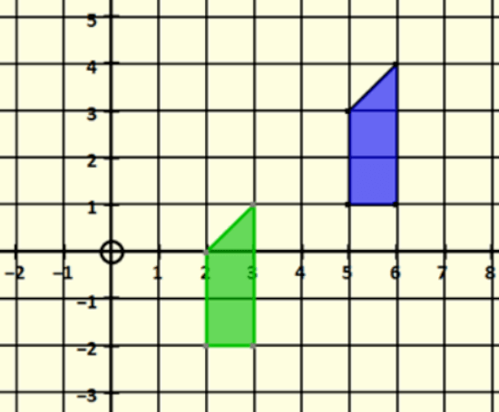 What's the algebraic representation of translating the blue object to the green?
