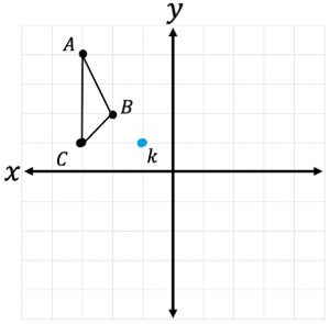 Write the ordered pair of point A' if a rotation of +90o took place around point k.