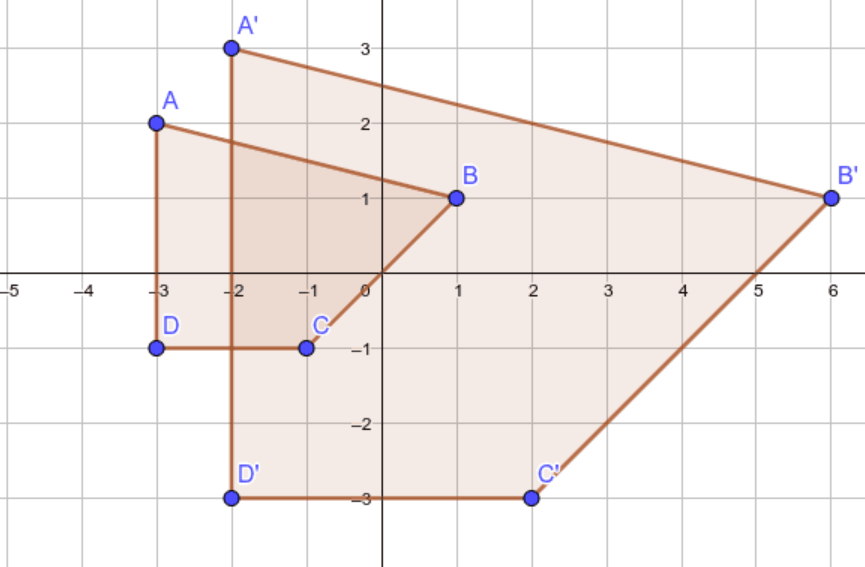 Write the coordinates of B' after a dilation of 0.75 about the origin.