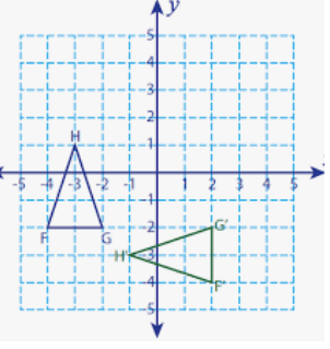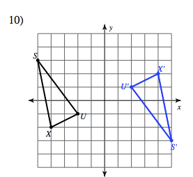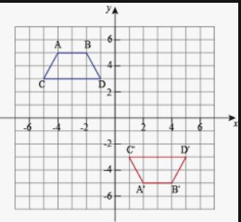 The exact descriptions of the transformation of the blue figure into the red figure.