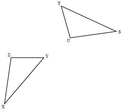 A series of transformations that would map triangle YZX onto triangle TUS.
