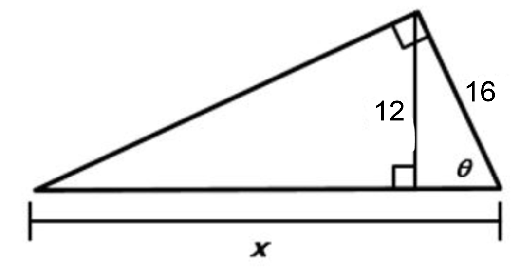 A ladder leans against a brick wall. The foot of the ladder is 6 feet from the wall. The ladder reaches a height of 15 feet on the wall. Find the angle the ladder makes with the wall.